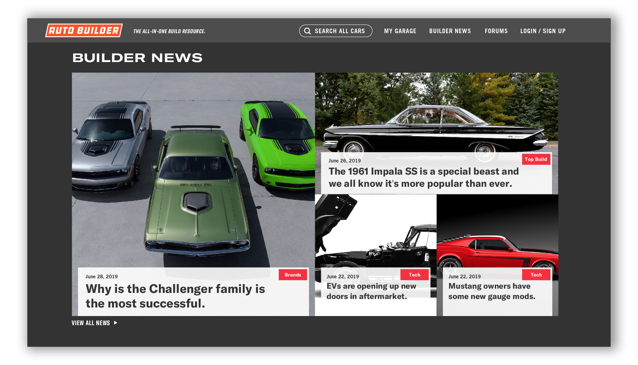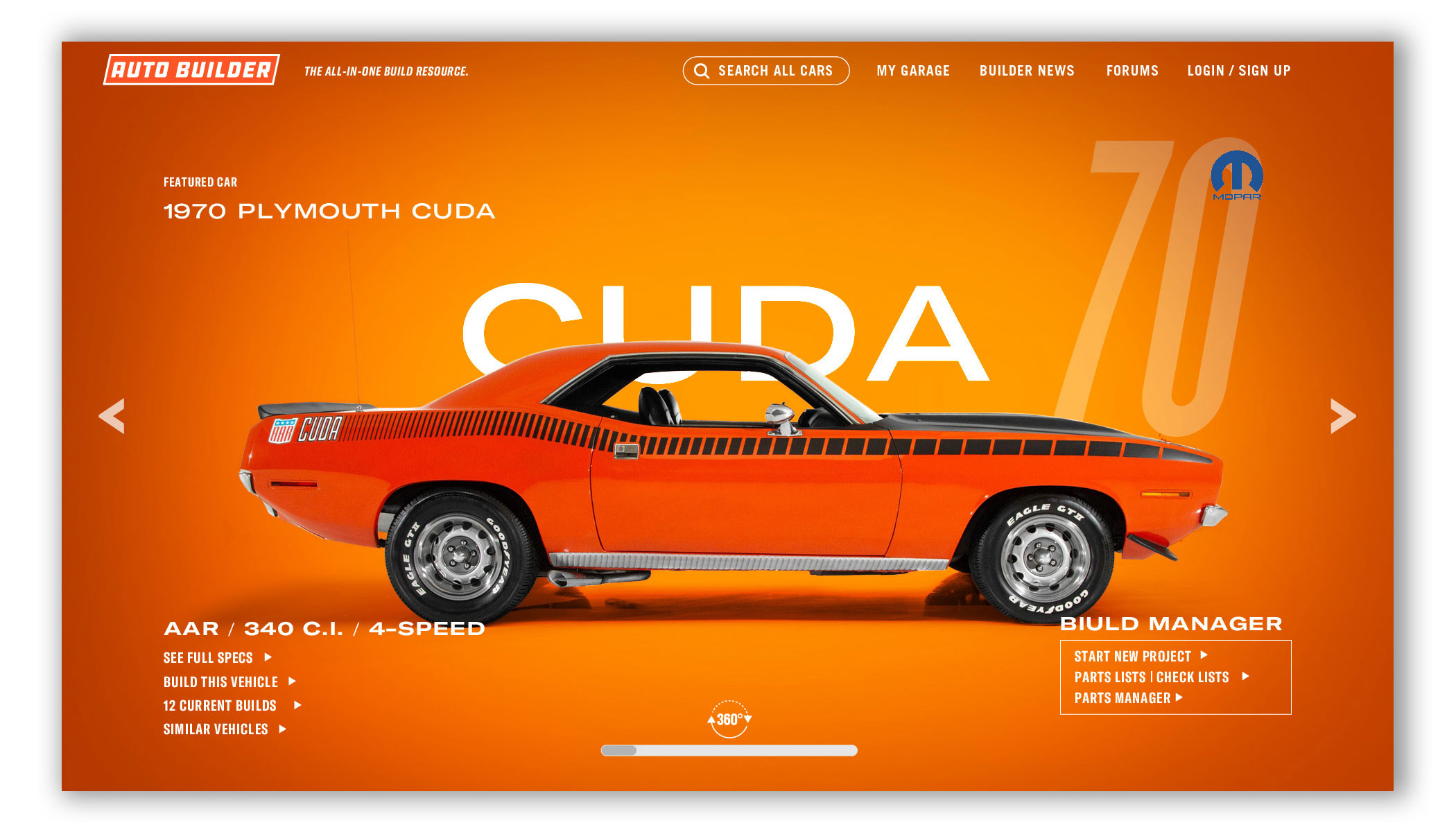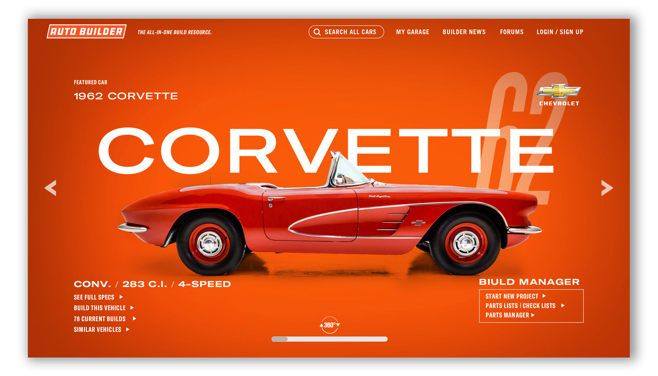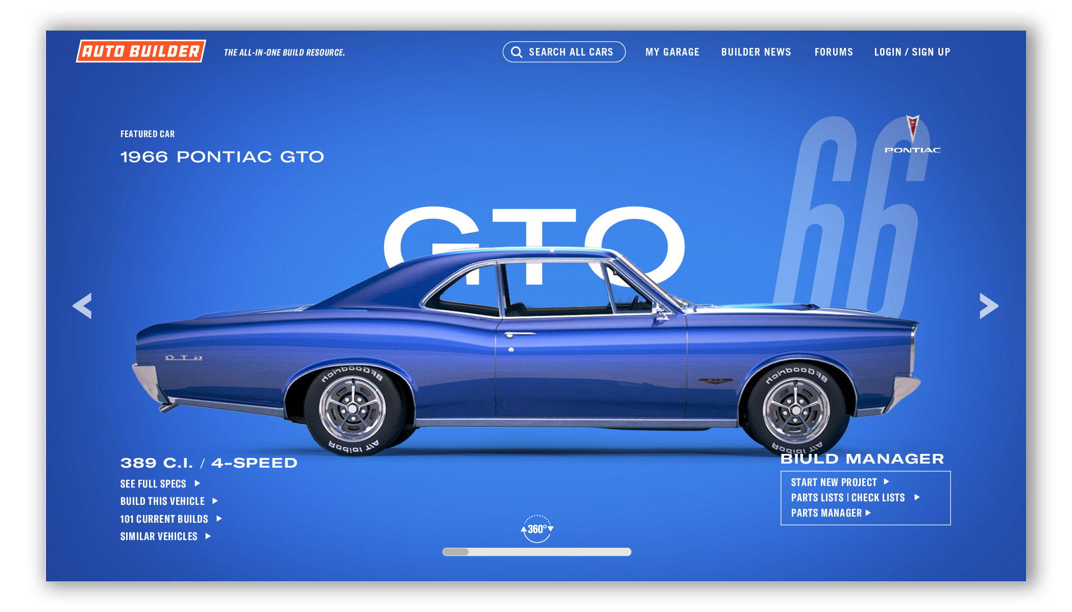 Auto Builder utilizes thousands of high quality 3D vehicle renderings, wheels, tires, engines, and parts to customize your build. Change the exterior and interior to any color. Try on wheels or swap in a different engine. You can view your vehicle’s specs, add notes, upload photos, find parts, and you can keep track of multiple builds at once. And since most of us builders are tight on space, tight on time, and tight on budget, this is one tool that can really make a difference. Think of it as project management built for automotive builders and restorers — professional or weekend warrior.