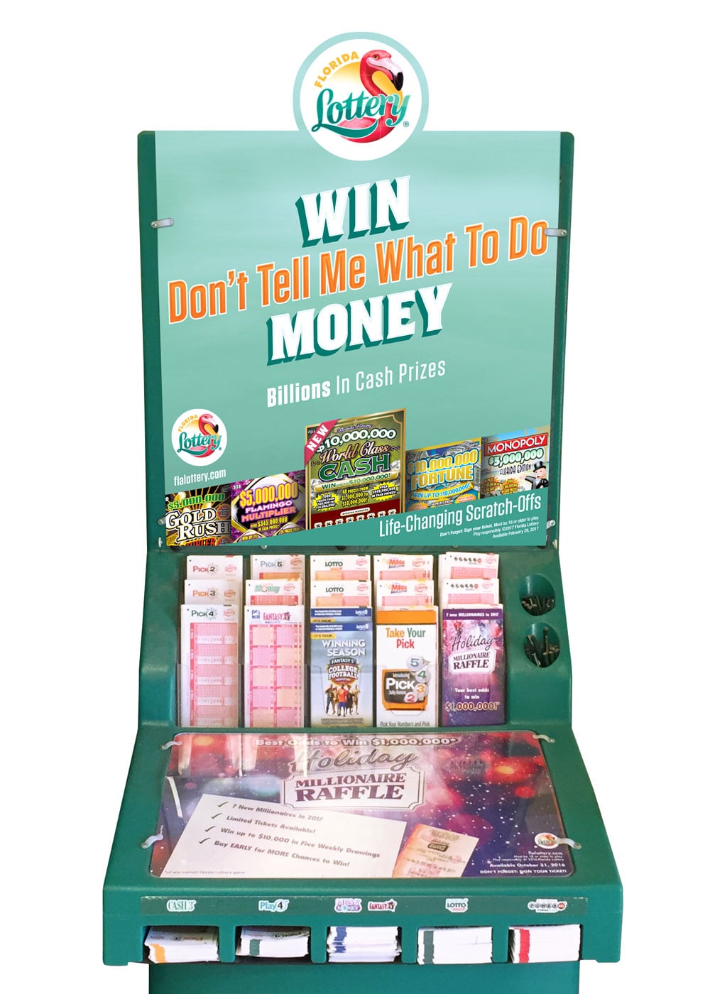 This campaign for the Florida Lottery presented a series of super popular scratch-off tickets, along with a new ticket, with a 'stick it to the man' attitude on everything. This campaign spanned across all media from out-of-home to in store, and on screen.