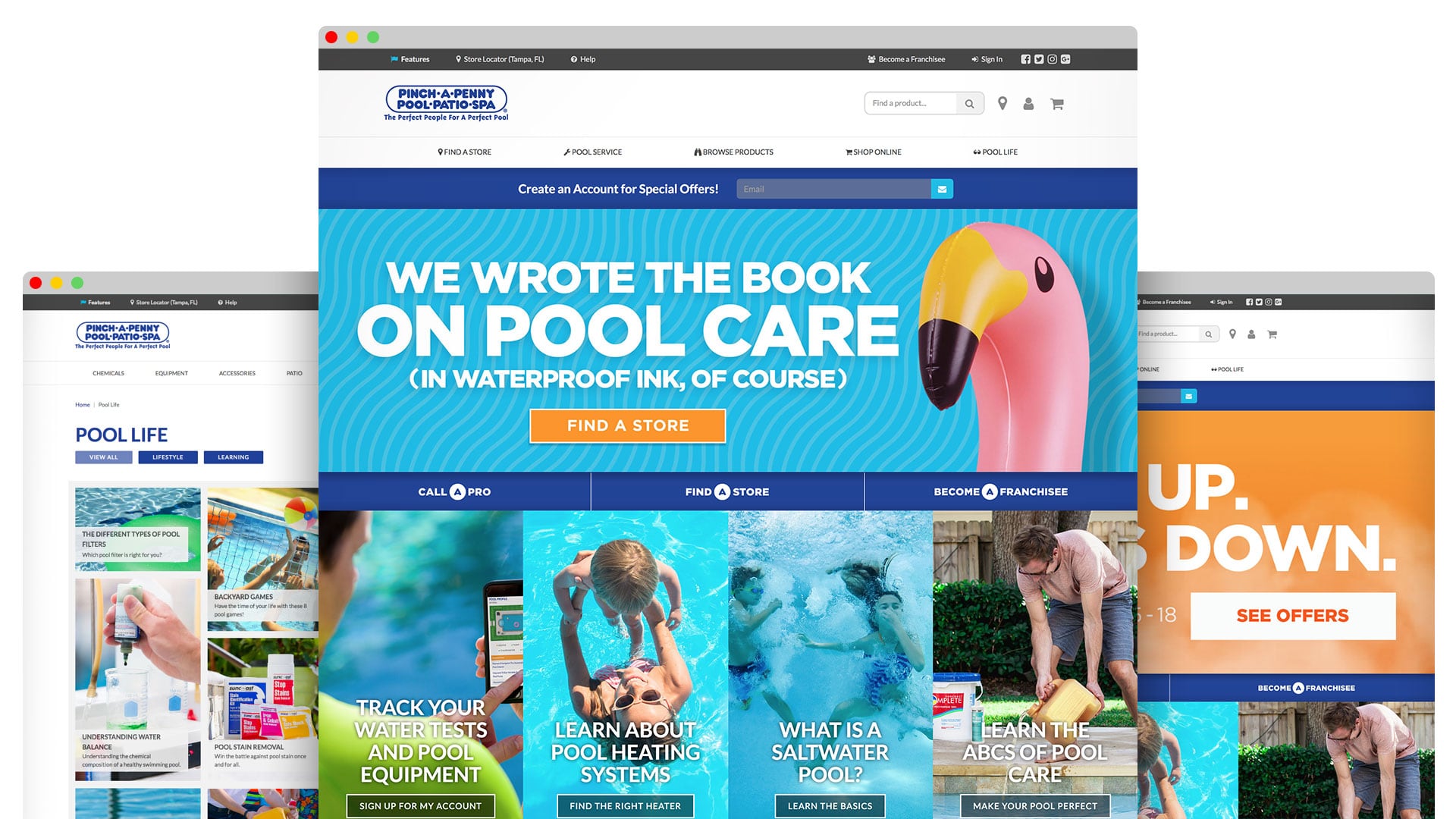 Over the past two years, we've updated nearly every aspect of the Pinch A Penny brand, transitioning it from a pool supply store to pool enjoyment brand. Everything from revamping the website, brand photography and TV spots, creating an animated pool care video campaign, and carrying the brand across social media channels.